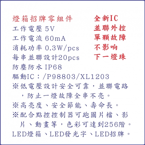 2、LED戶外招牌製作需其它材料:如前述的各板材(可代工製作)、電線(本公司可以提供)、LED招牌專用電源(DC5V,本公司可以提供)。