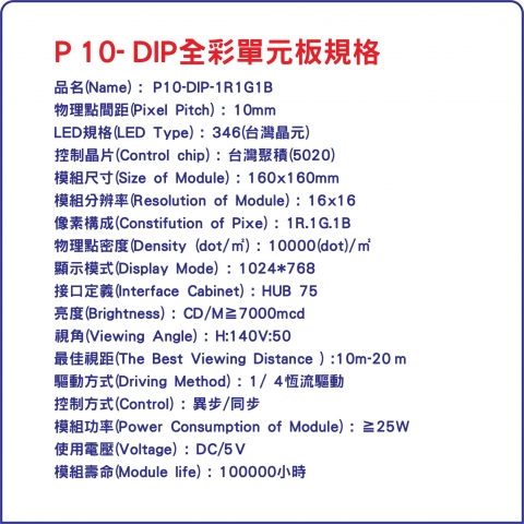 本全彩模組是全彩戶外電視牆之主要組件,因每一點距是10mm,故稱為(P10)