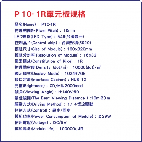本單色模組是戶外字幕機之主要組件,因每一點距是10mm,故稱為(P10)