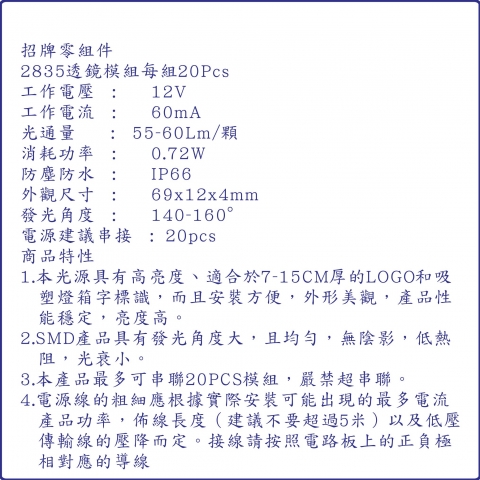 3. 本產品最多可串聯20PCS模組,嚴禁超串聯。
